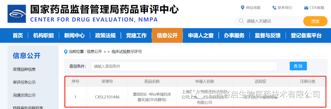 2022年01月26日,中国国家药品监督管理局药品审评中心(CDE)公示,上海Z6COM人生就是博(中国)生物医药技术有限公司一款针对中重度哮喘治疗的核心药物LQ036——重组抗IL-4Rα单域抗体雾化液(毕赤酵母)的临床试验申请(IND)正式取得批准(通知书编号:2022LP00124),从IND受理到获批仅用2个月,此间无发补项。